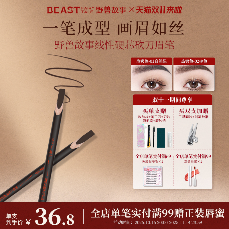 BEAST野兽故事防水防汗野生硬芯眉笔不晕染扁头刀锋持久不易脱妆