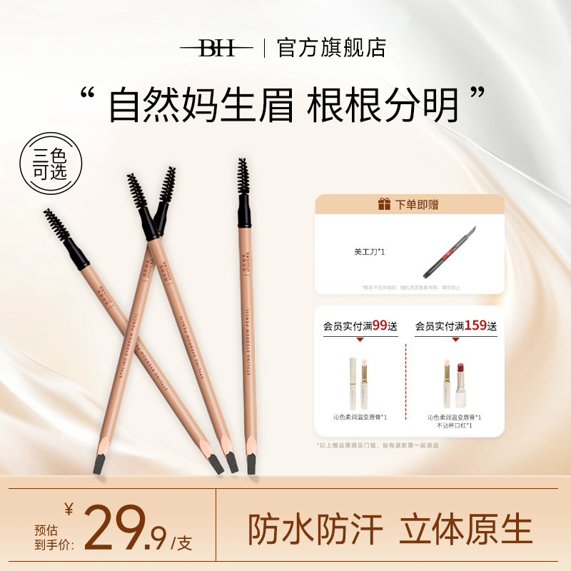BH砍刀硬芯眉笔防水持久不脱色根根分明坎刀棕色化妆师纹绣师专用