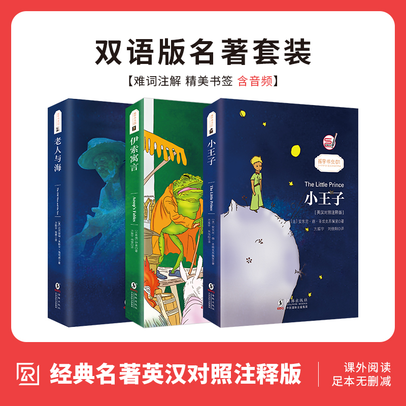 小王子书正版包邮+老人与海+伊索寓言中英对照版 语文名著系列备考书世界名著当代文学小说作品集 青少年版课外读物英语阅读书籍