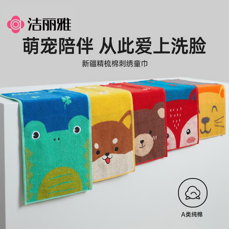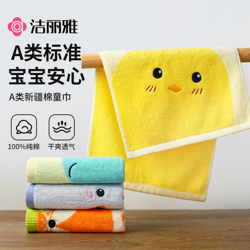 洁丽雅儿童毛巾纯棉宝宝专用洗脸柔软家用吸水小孩毛巾官方旗舰店