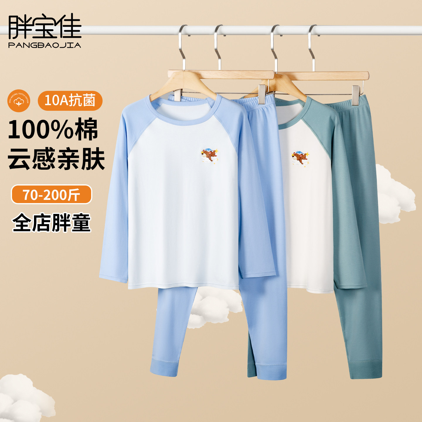 胖男童秋衣秋裤套装纯棉加肥加大青少年大童儿童内衣全棉大码童装