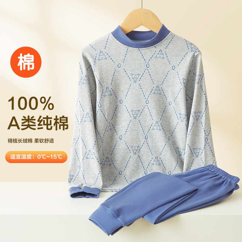 棉致儿童保暖内衣男童秋衣秋裤套装纯棉a类秋冬中大童睡衣棉毛衫