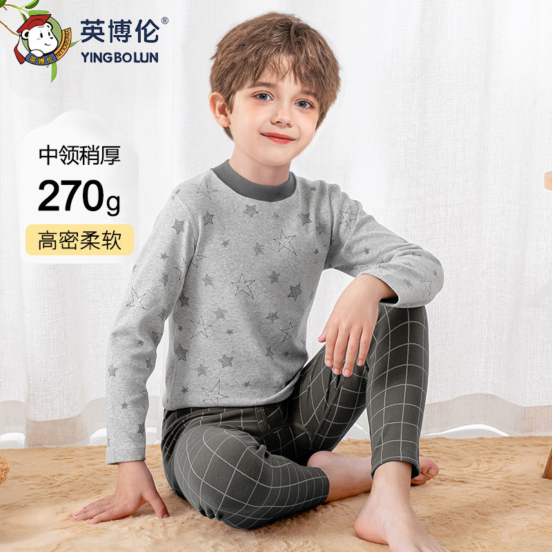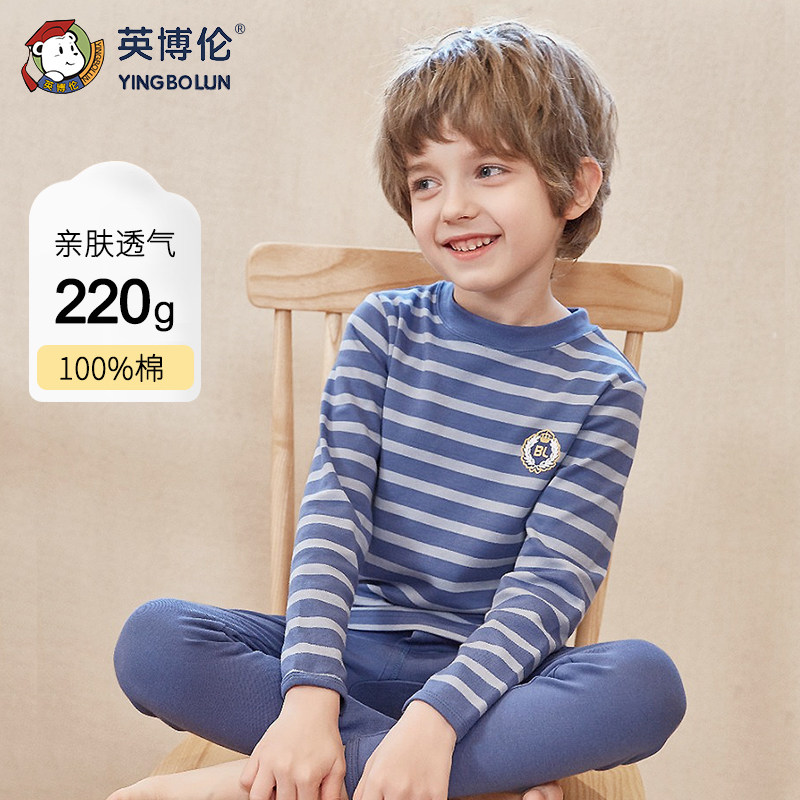 英博伦儿童内衣套装纯棉男童秋衣秋裤全棉小男孩睡衣中大童棉毛衫