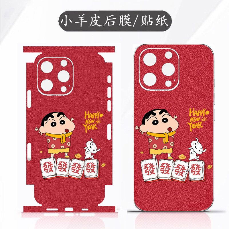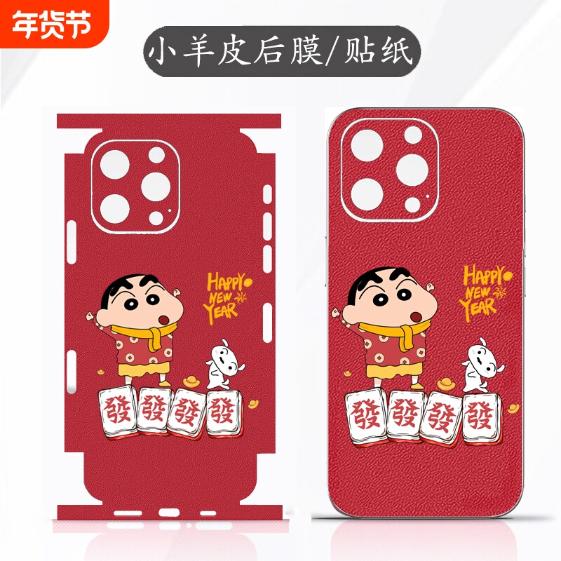 适用苹果13promax手机贴膜12后贴11全身贴13mini背膜xr新年贴纸7Plus蜡笔小新8卡通xsmax喜庆xs贴膜