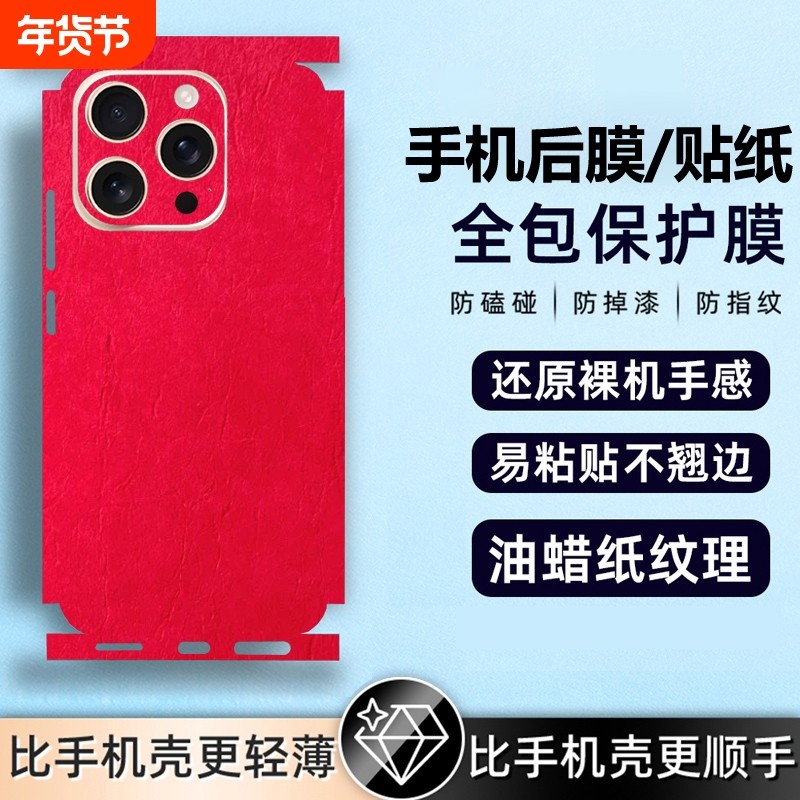 适用苹果13promax手机贴膜12镜头贴11后贴13mini背膜xr全身贴纸7Plus商务油蜡纸8卡通xsmax喜庆xs贴膜