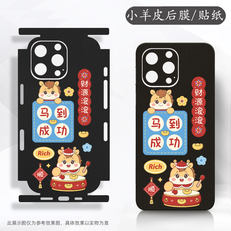 坎宁安适用苹果13promax手机贴膜12全身贴11后贴13mini背膜xr马年贴纸7Plus马年成功8卡通xsmax喜庆x保护贴膜