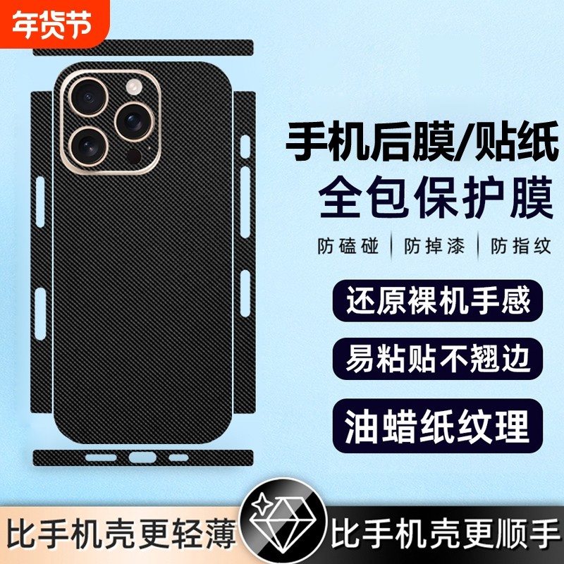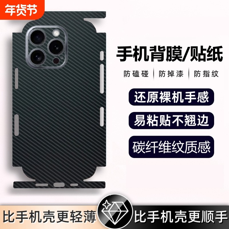 适用苹果13promax手机贴膜12全身贴11后贴13mini镜头膜xr背膜贴纸7Plus凯夫拉纹8商务xsmax碳纤维纹xs