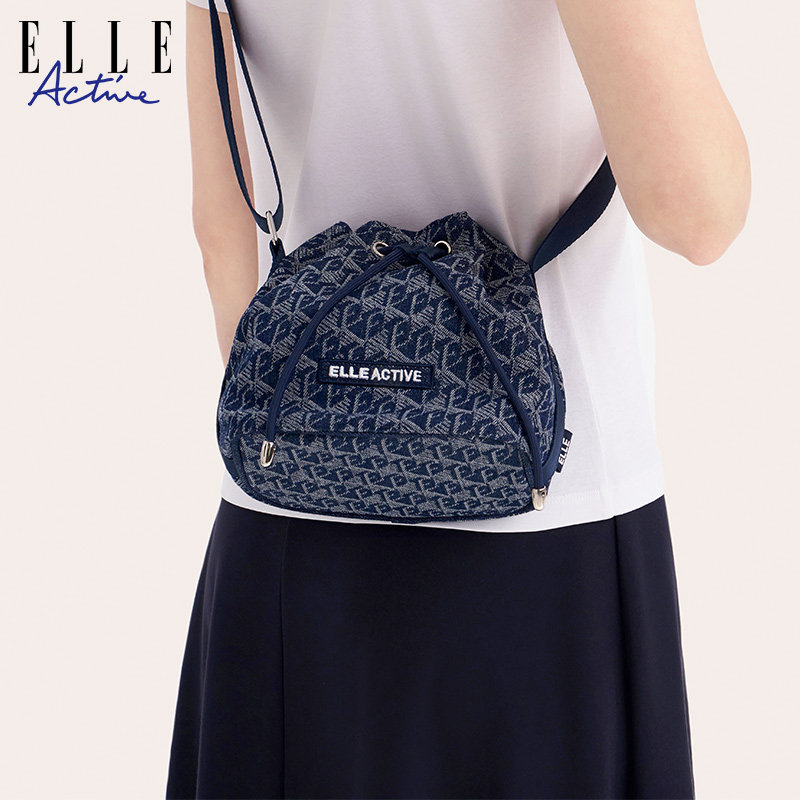 ELLE Active时尚潮流女包仿牛仔抽绳水桶包高级感气质单肩斜挎包