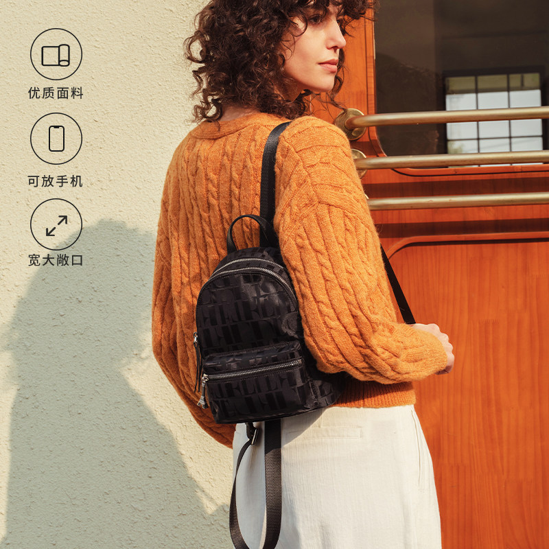 ELLE女包黑色双肩包高端品牌尼龙旅行通勤书包大容量女士旅游背包