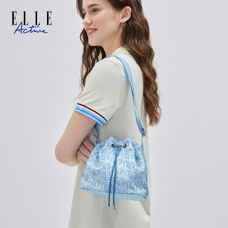 ELLE Active女包抽绳字母满印水桶包高级感便携斜挎包休闲百搭