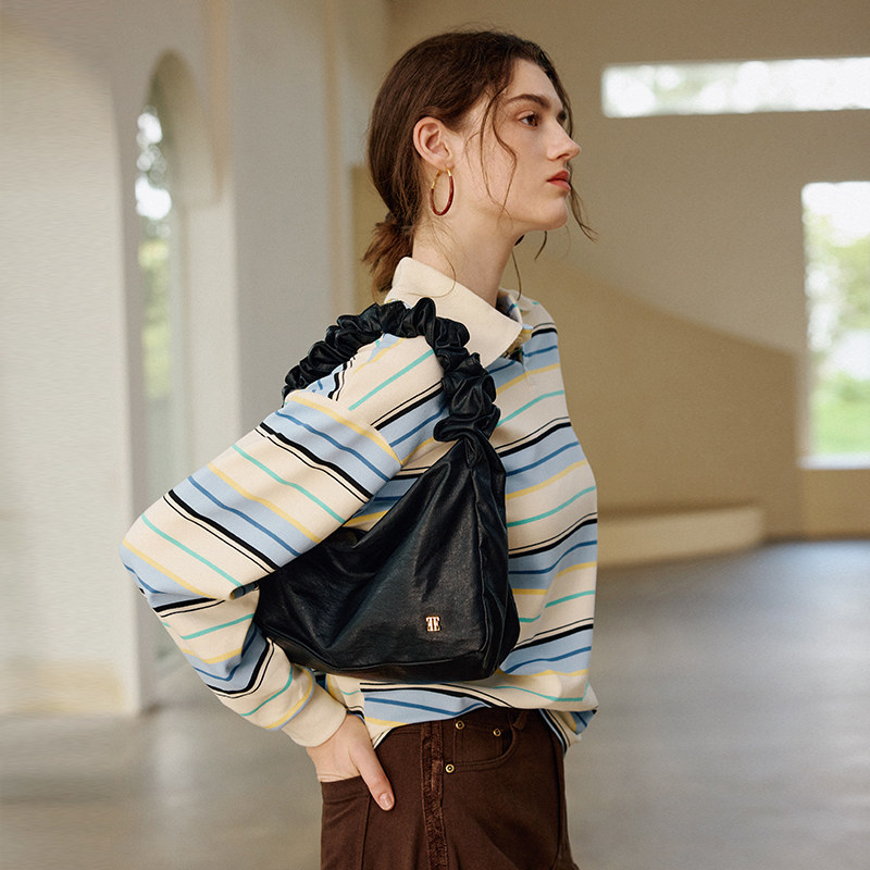 ELLE女包褶皱抽绳云朵软枕包女士手提包腋下包通勤约会百搭高级感
