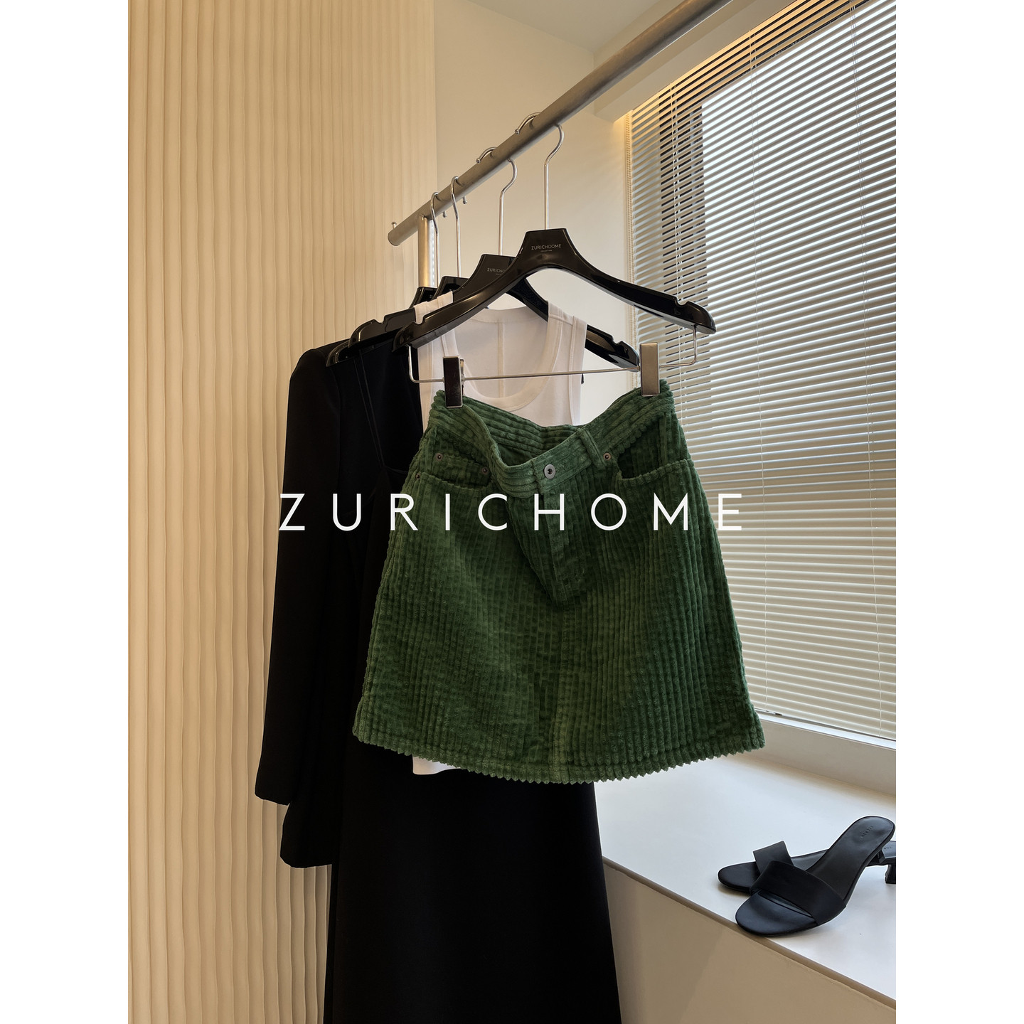 ZURICH HOME 美式复古 洋气森绿色 百搭显瘦小A版灯芯绒半裙短裙