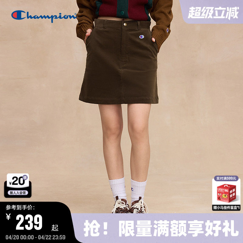 Champion冠军灯芯绒半裙2025秋季新款潮复古校园风A字短裙美拉德