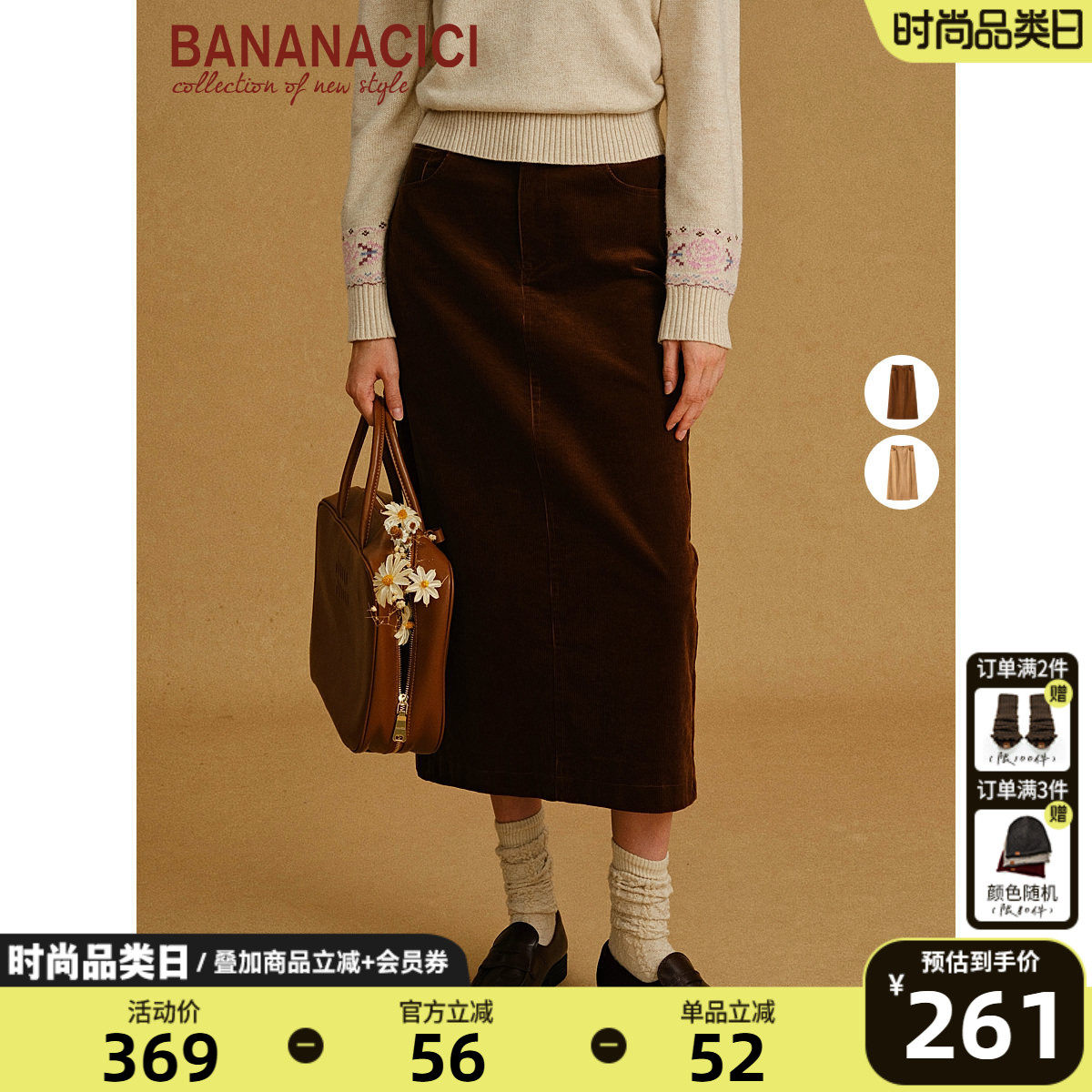 【王鹤润同款】BANANA CICI2025年冬季灯芯绒直筒高腰长款半身裙