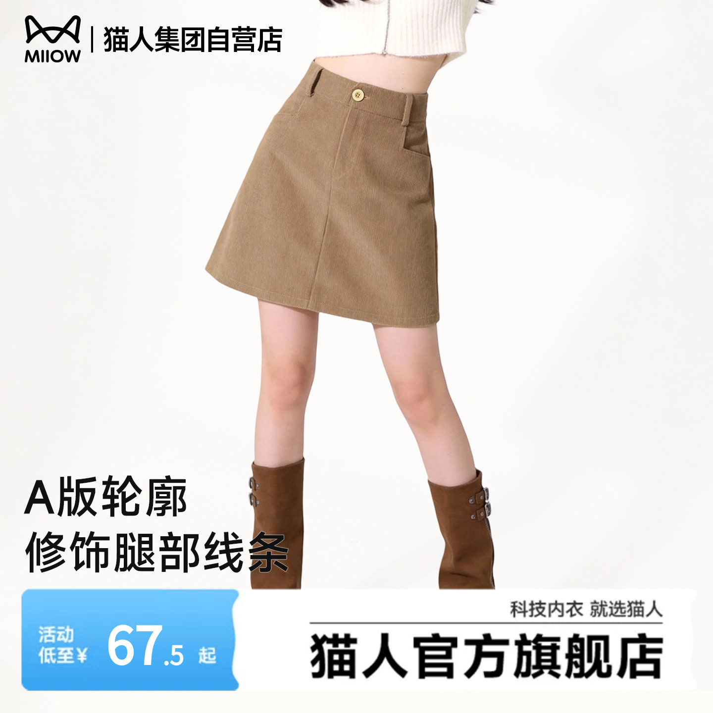 猫人灯芯绒短裙子女2026年春秋新款韩系A字高腰显瘦小个子半身裙Z