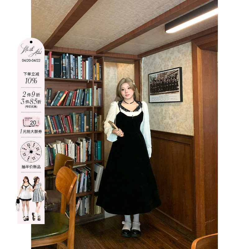 枕梦村庄 玛丽小姐 法式复古宫廷蕾丝花边立领灯芯绒连衣裙秋冬新