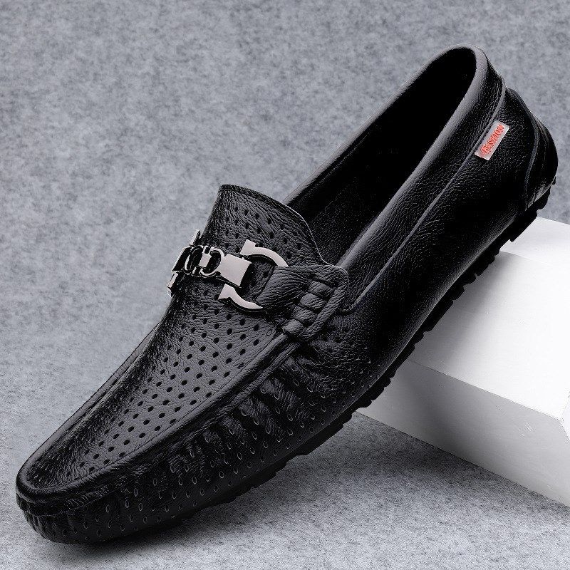 外贸男鞋新款真皮软底豆豆鞋夏季懒人一脚蹬开车鞋透气休闲皮鞋男