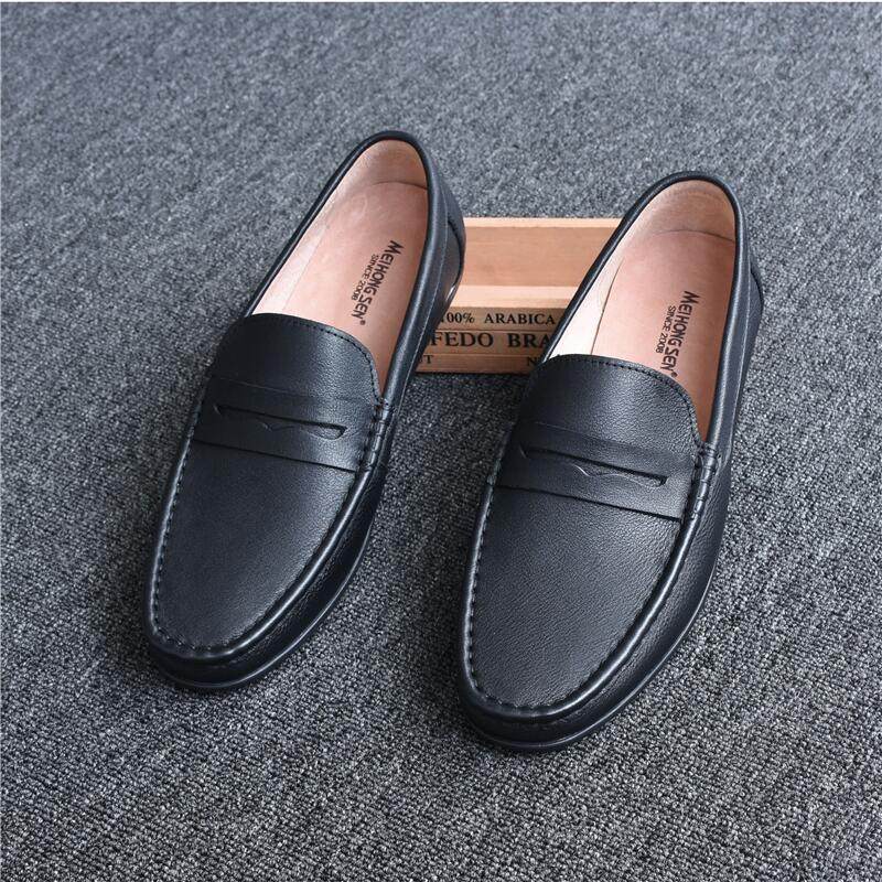 单层牛皮男鞋豆豆鞋夏季真皮软底皮鞋一脚蹬懒人驾车鞋男士休闲鞋