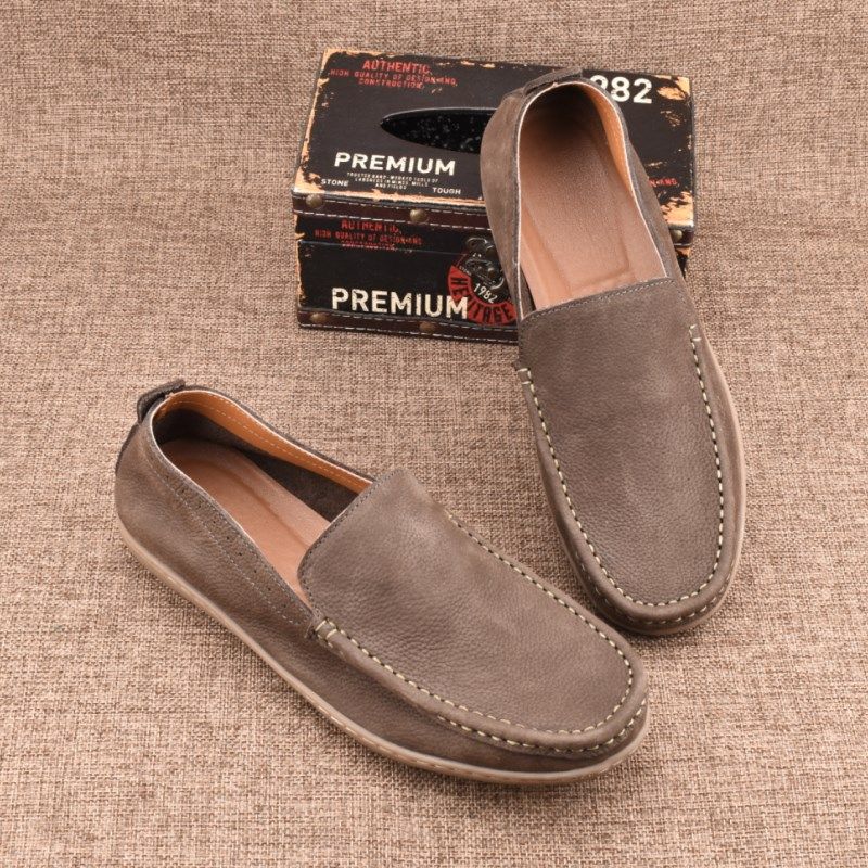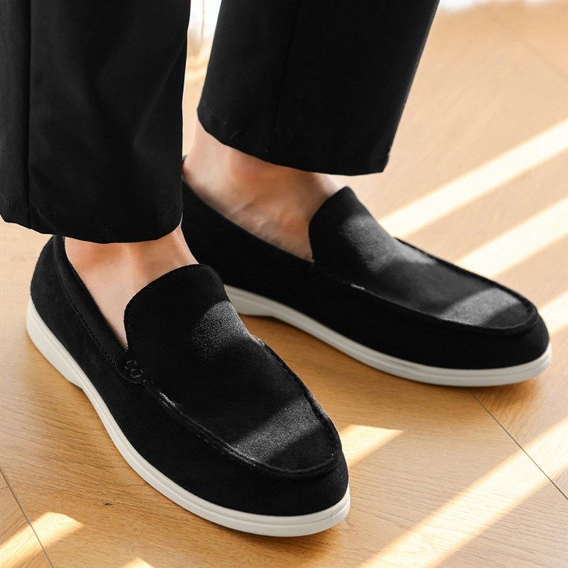 反绒乐福鞋男懒人舒适透气翻毛休闲皮鞋一脚蹬磨砂牛皮豆豆鞋夏季