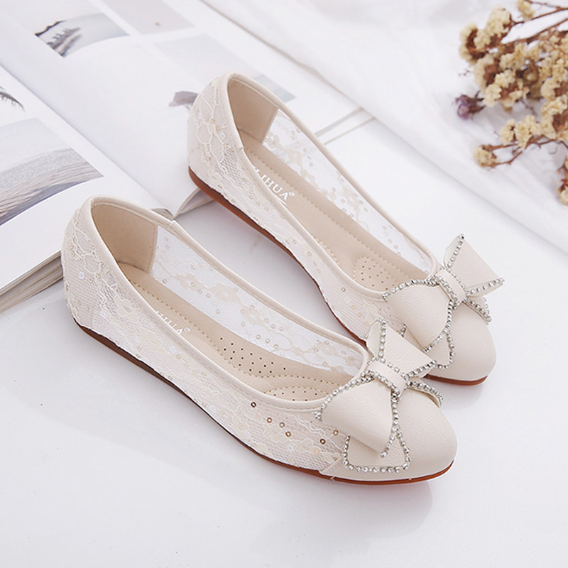单鞋女平底鞋网面透气豆豆鞋夏季网鞋女鞋妈妈鞋子软底网纱凉鞋女