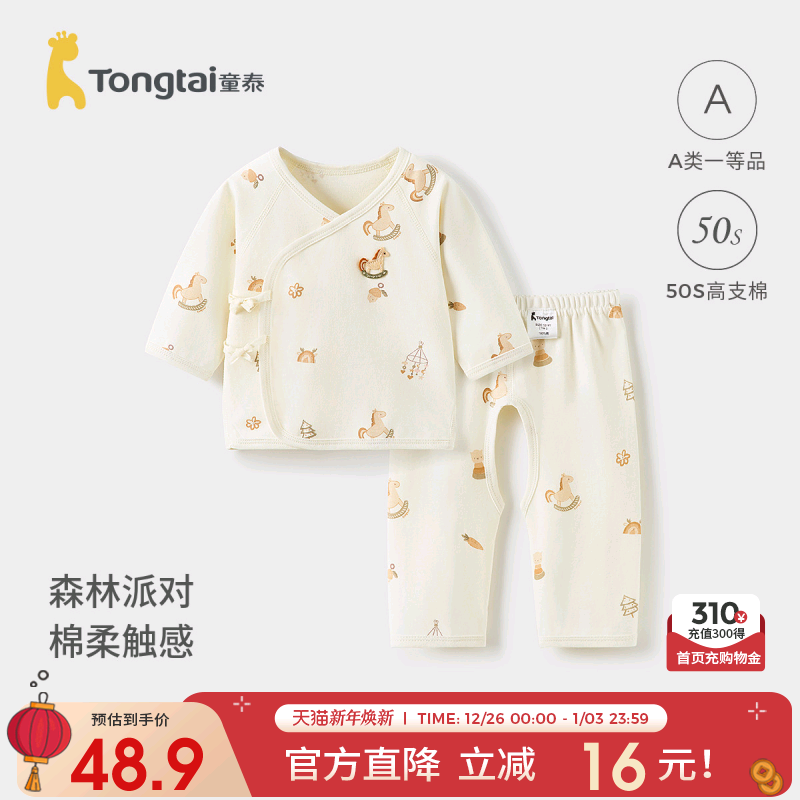 童泰新生婴儿儿衣服半背衣春秋季初生宝宝纯棉上衣和尚服2件秋装
