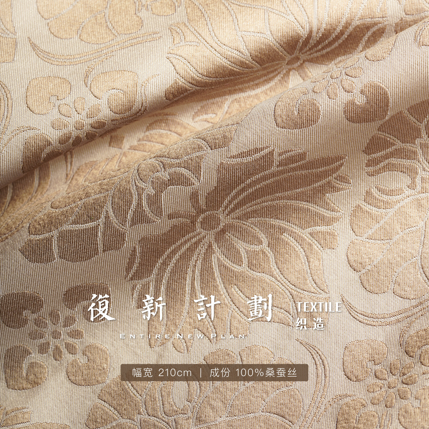 【莲花纹米色真丝布料】100%桑蚕丝 高级质感 2.1m布幅 27姆米