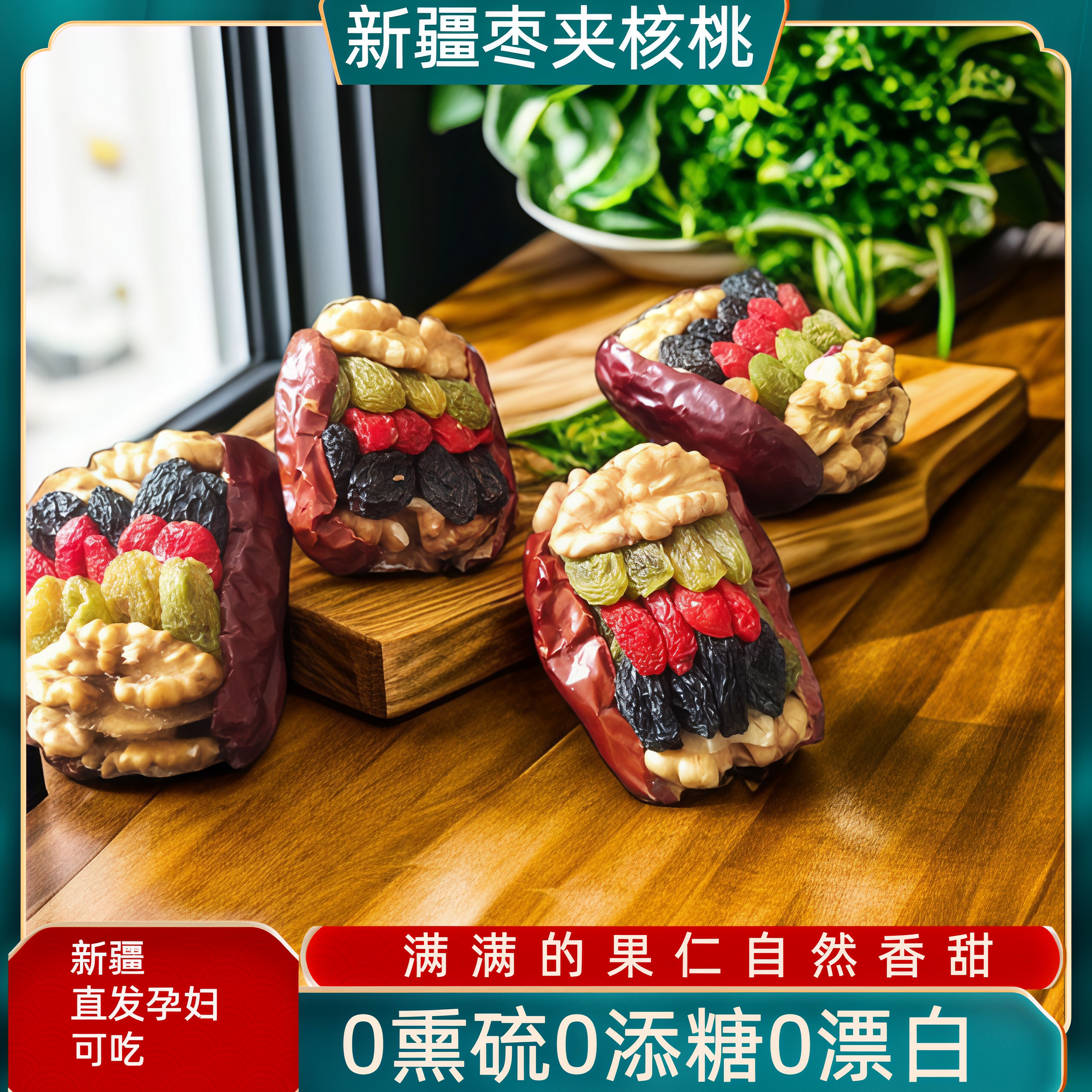 买1送1新疆和田红枣夹核桃仁葡萄干大枣子干果什锦夹心抱抱零食