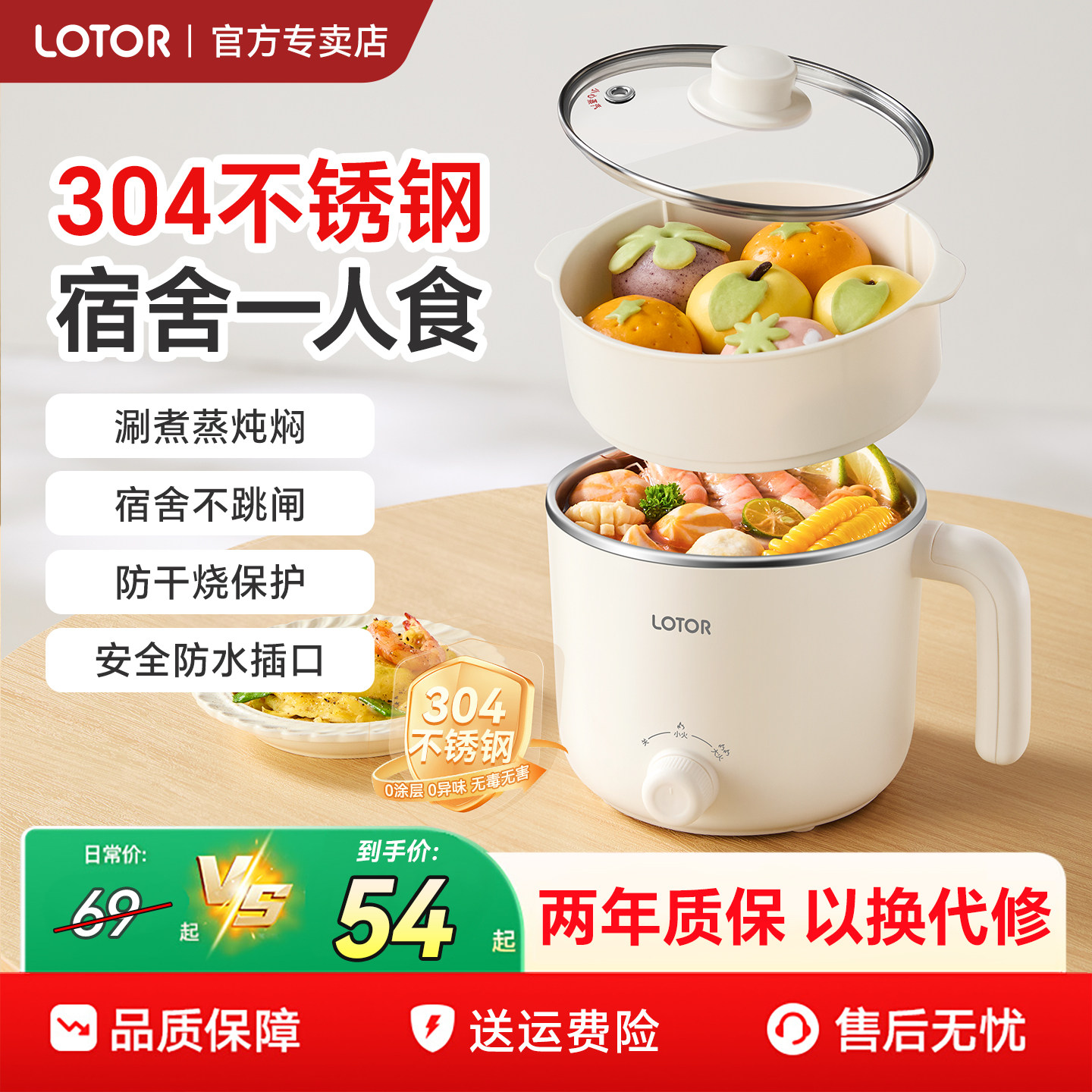 lotor徕多电煮锅304不锈钢宿舍煮面锅一人食电火锅小型电热小电锅