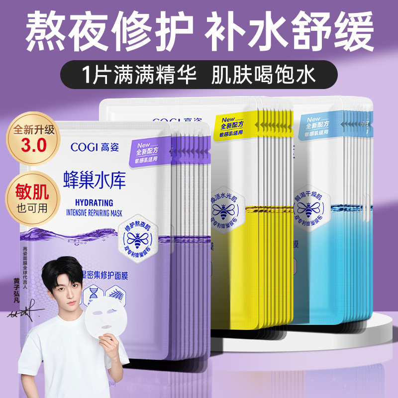 高姿正品面膜女蜂巢水库补水保湿减糖提亮修护熬夜肌贴片官方正品