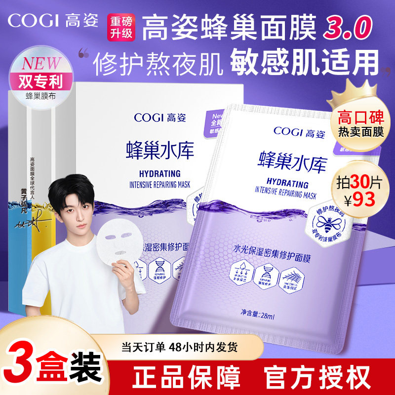 COGI/高姿蜂巢水库面膜30片装女熬夜修护虾青素正品补水保湿