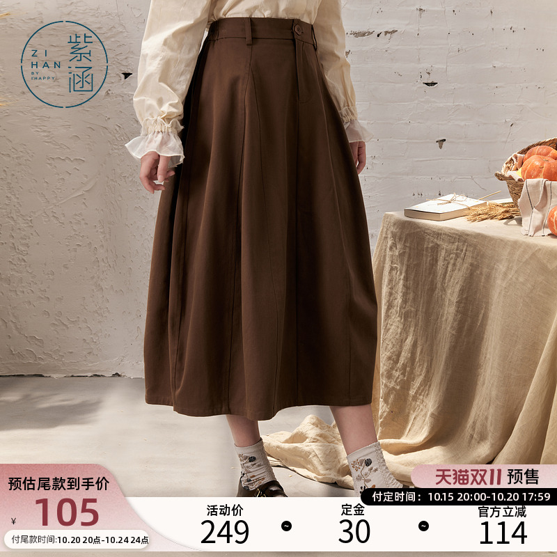 紫涵拼接花苞型半身裙女秋季新款高腰显瘦休闲通勤百搭宽松中长裙