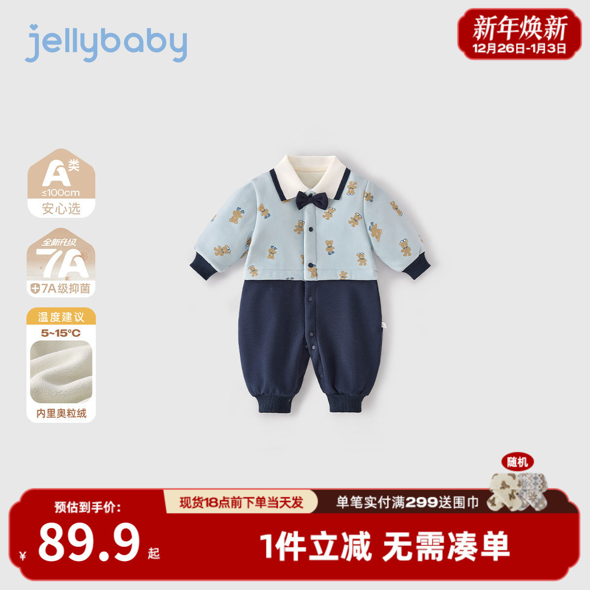 [抗菌a类]新生儿哈衣秋冬男童连身衣加绒爬服1宝宝连体衣儿童衣服