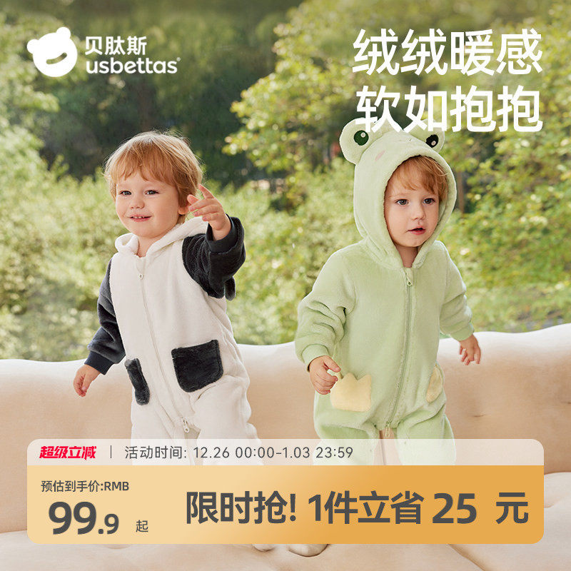 [清仓特惠】贝肽斯婴儿连体衣秋冬新生儿宝宝法兰绒睡衣外穿爬服