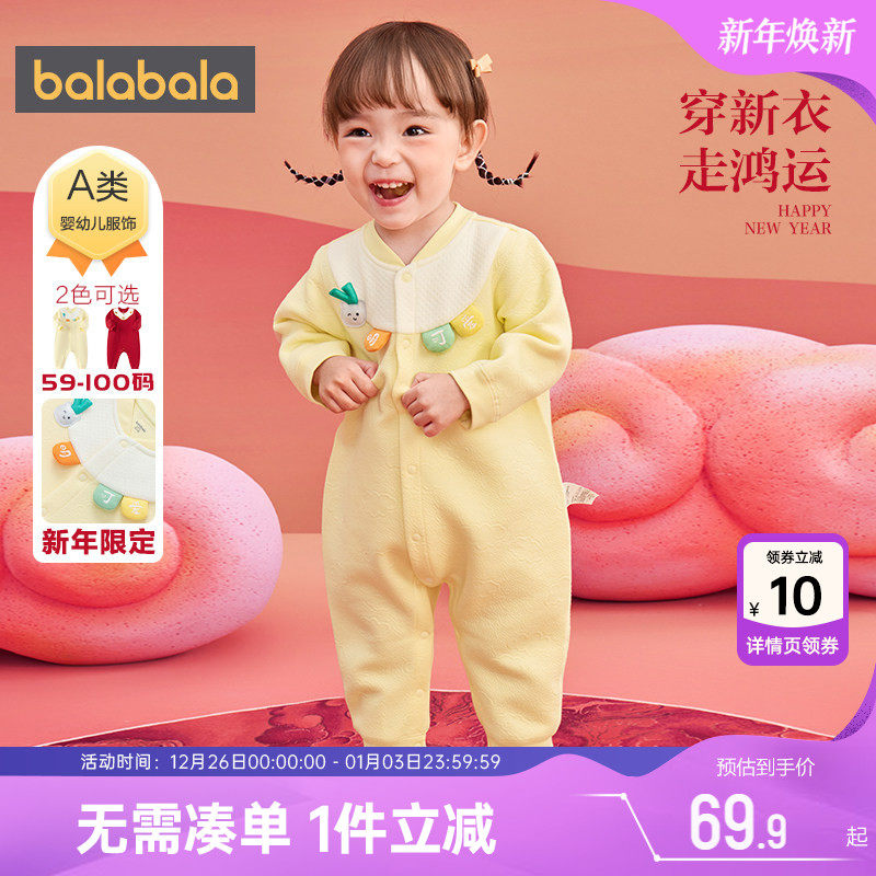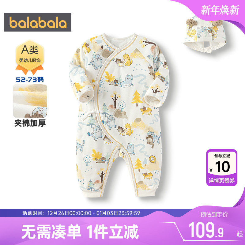 巴拉巴拉新生婴儿连体衣冬装2025款秋冬宝宝A类棉服内着哈衣爬服