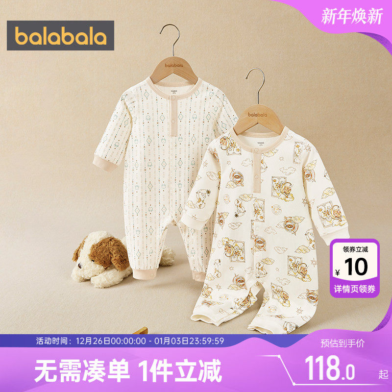 巴拉巴拉婴儿连体衣新生儿衣服宝宝哈衣爬服纯棉2025春秋两件装萌