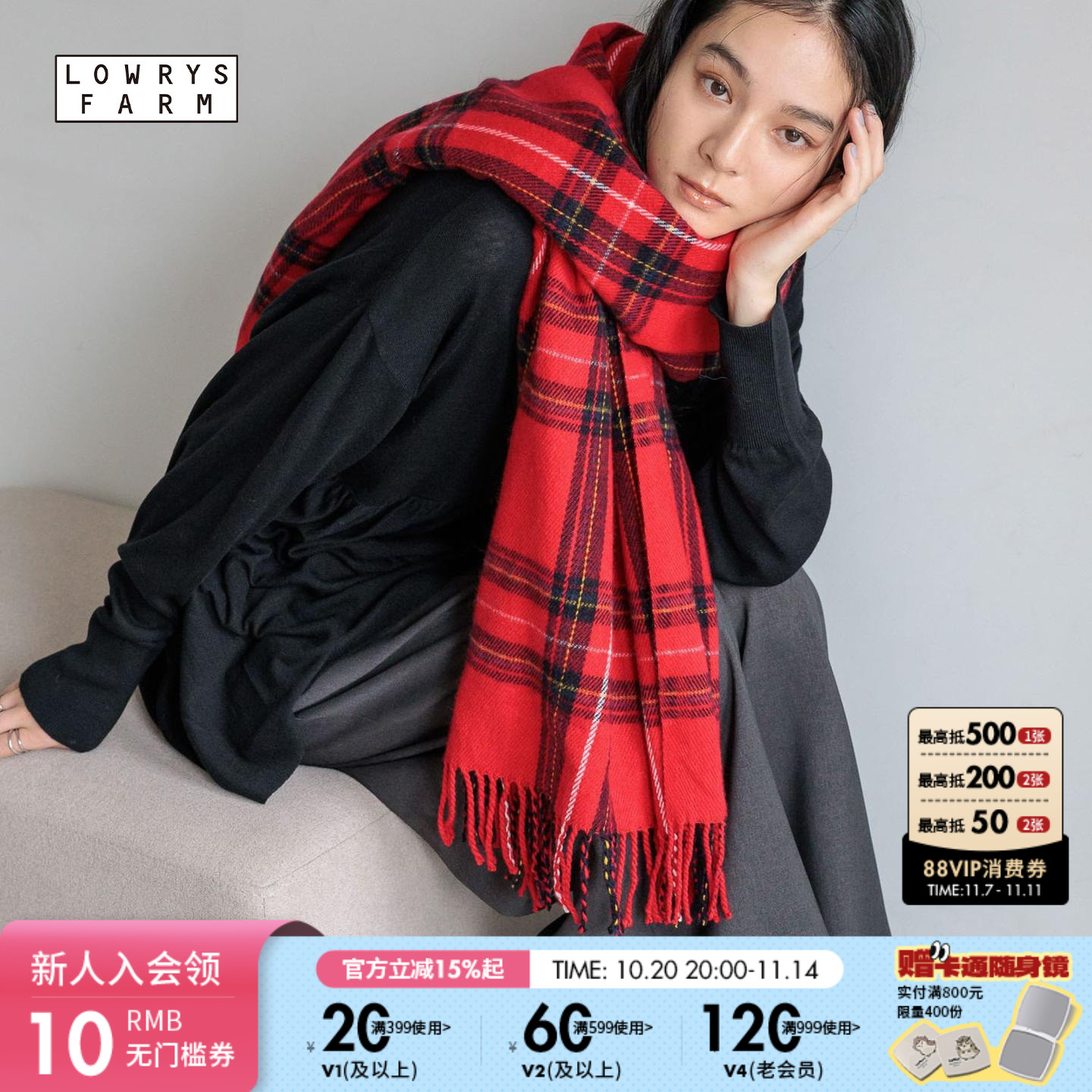 LOWRYS FARM 围巾男女同款2025秋冬新款复古格纹流苏披肩580202