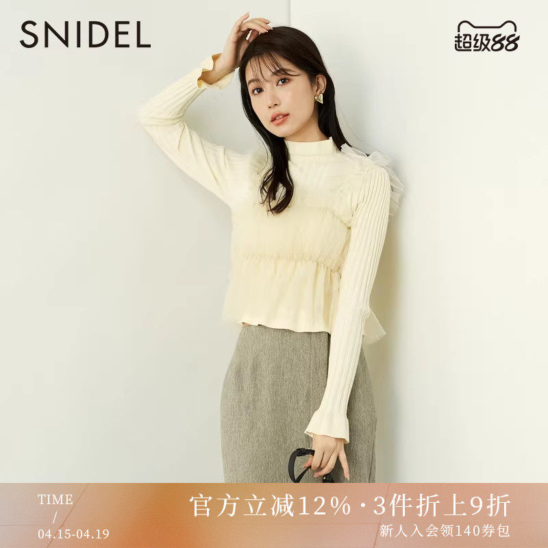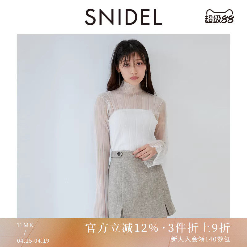 SNIDEL秋冬款高领喇叭袖透视修身百搭针织打底衫SWNT245077