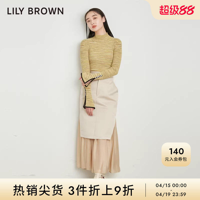 LILY BROWN春夏款基础喇叭袖修身针织开叉打底衫LWNT231099