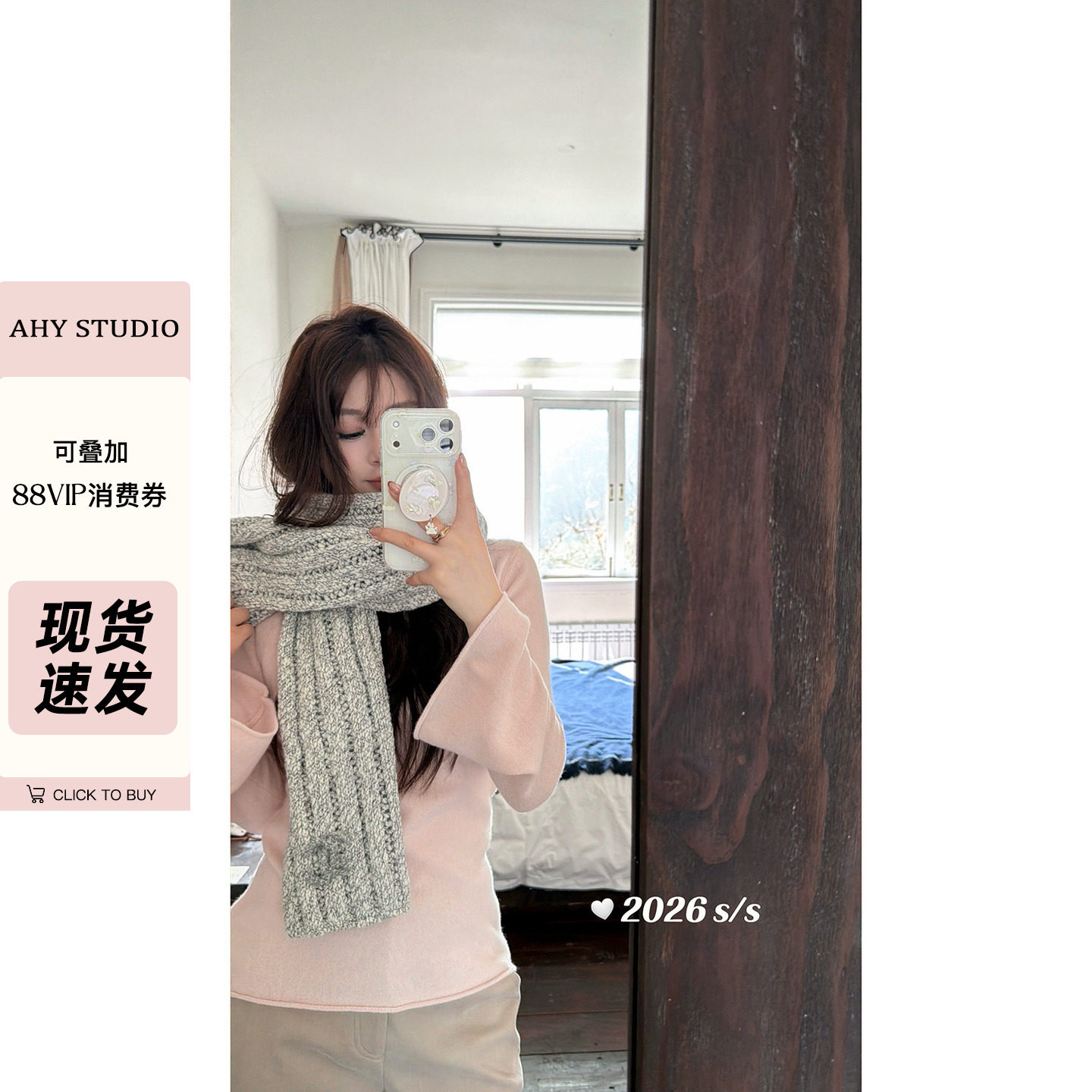 现货【AHY】温柔细腻~26早春100%羊毛收腰卷边喇叭袖打底针织衫