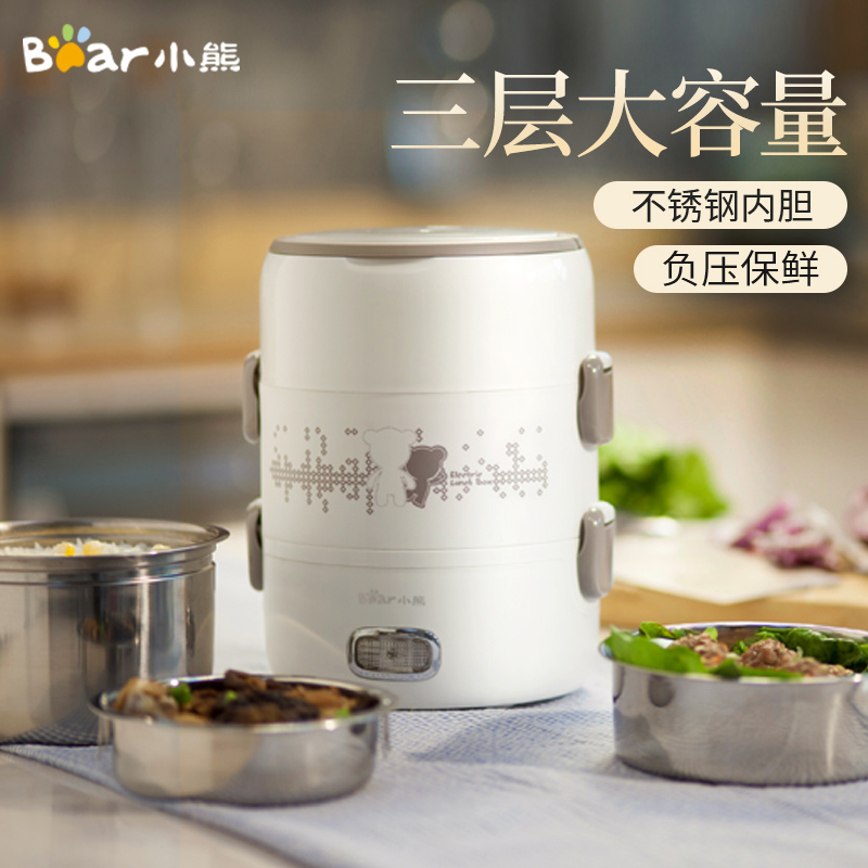 小熊办公室热饭器三层不锈钢蒸煮煲电热饭盒便携可插电加热电饭盒