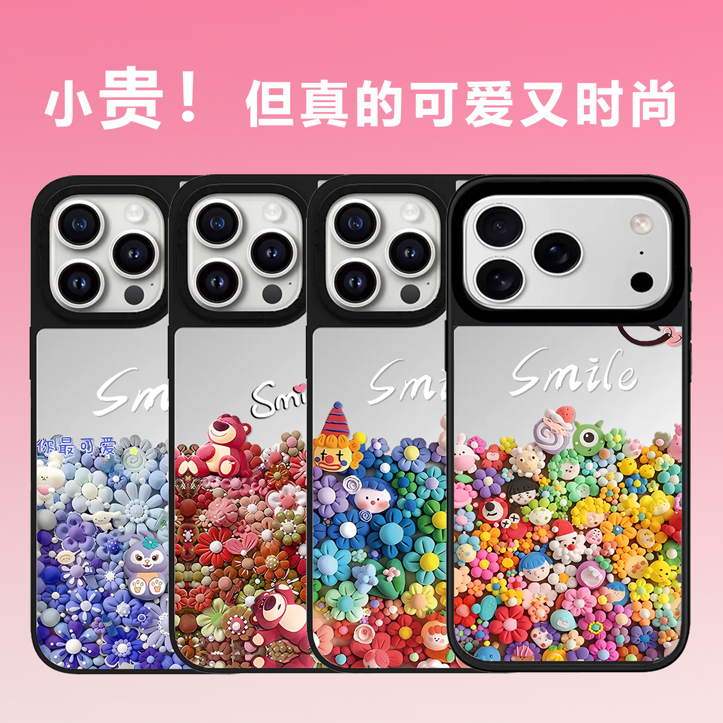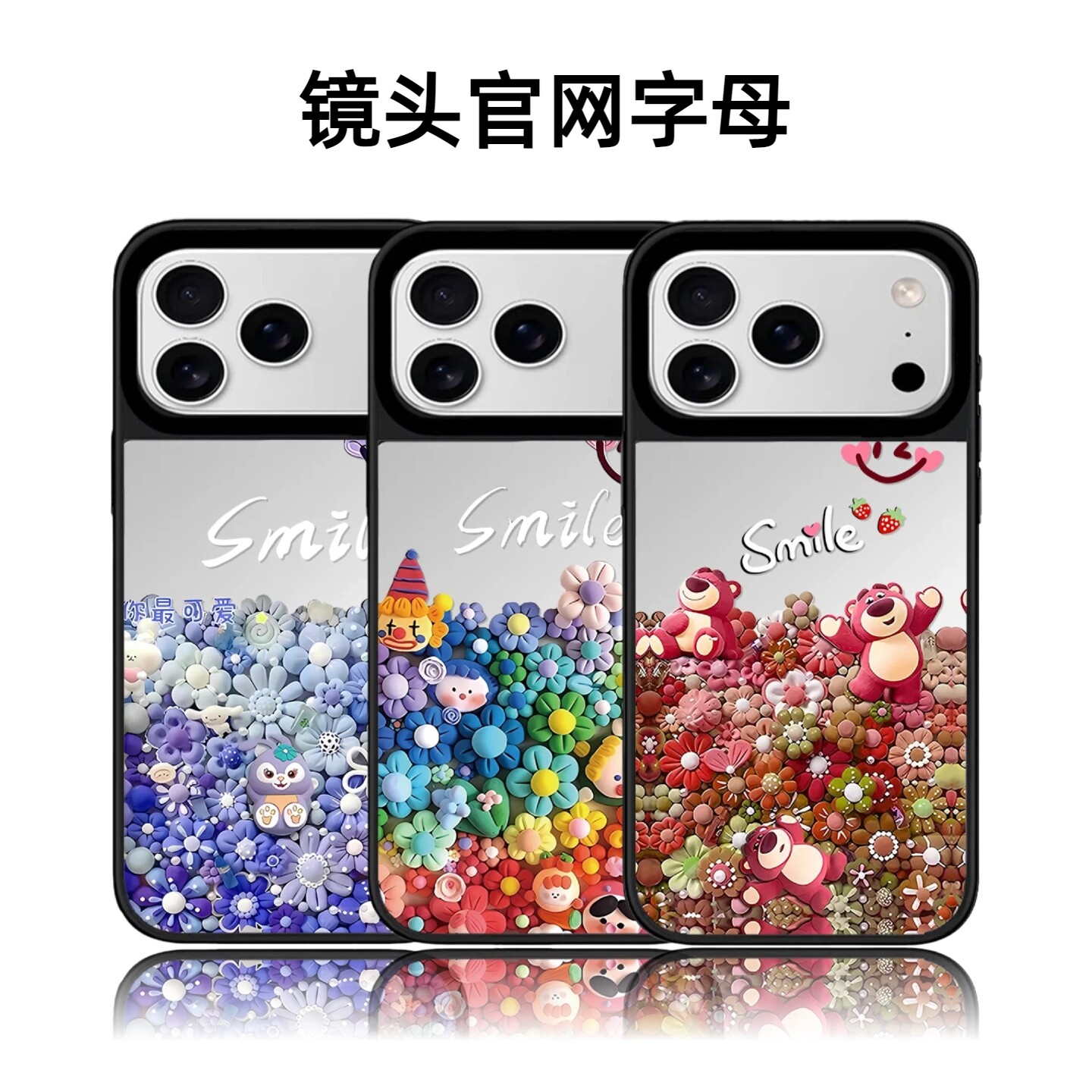 新款smile大眼仔草莓熊公仔适用于苹果镜面磁吸手机壳iPhone17Air防摔16ProMax高级感15/14/13/12系列保护套