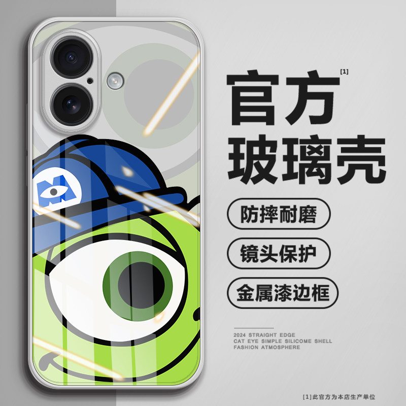 迪士尼iphone16promax手机壳17苹果14pro15大眼仔12mini卡通13怪兽x可爱xs油画风11新款xr玻璃8plus适用套por