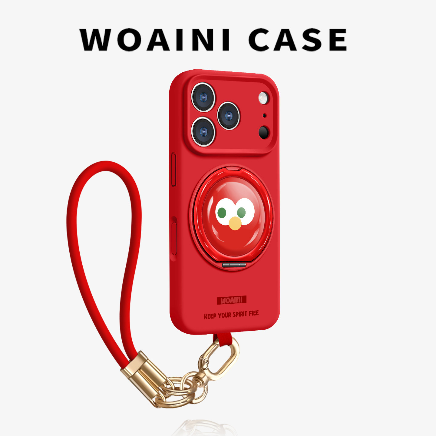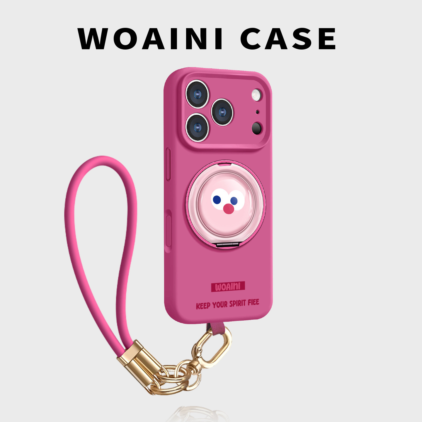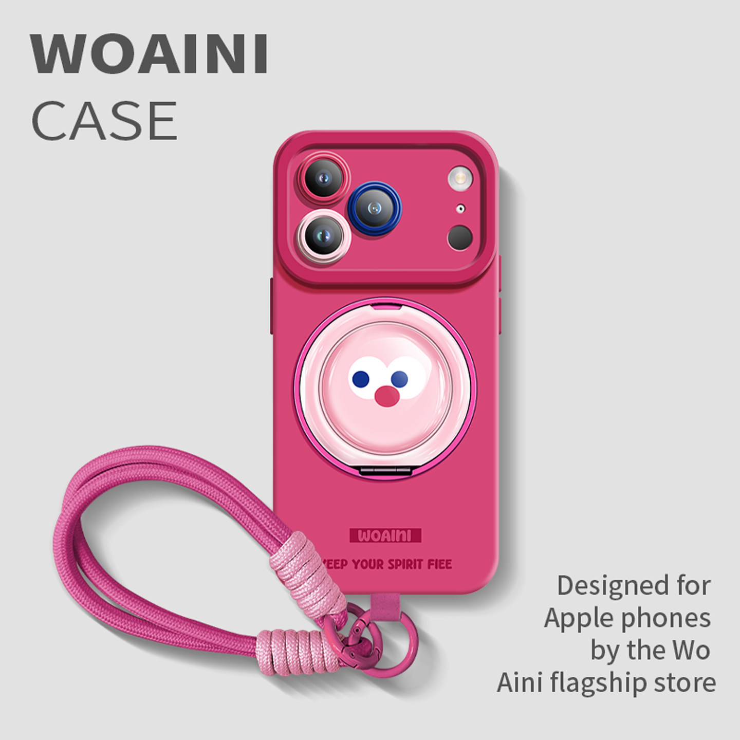 沃艾尼适用苹果17手机壳360旋转支架iPhone16promax软硅胶15大眼仔14plus网红13带挂绳17pm可爱卡通12防摔11