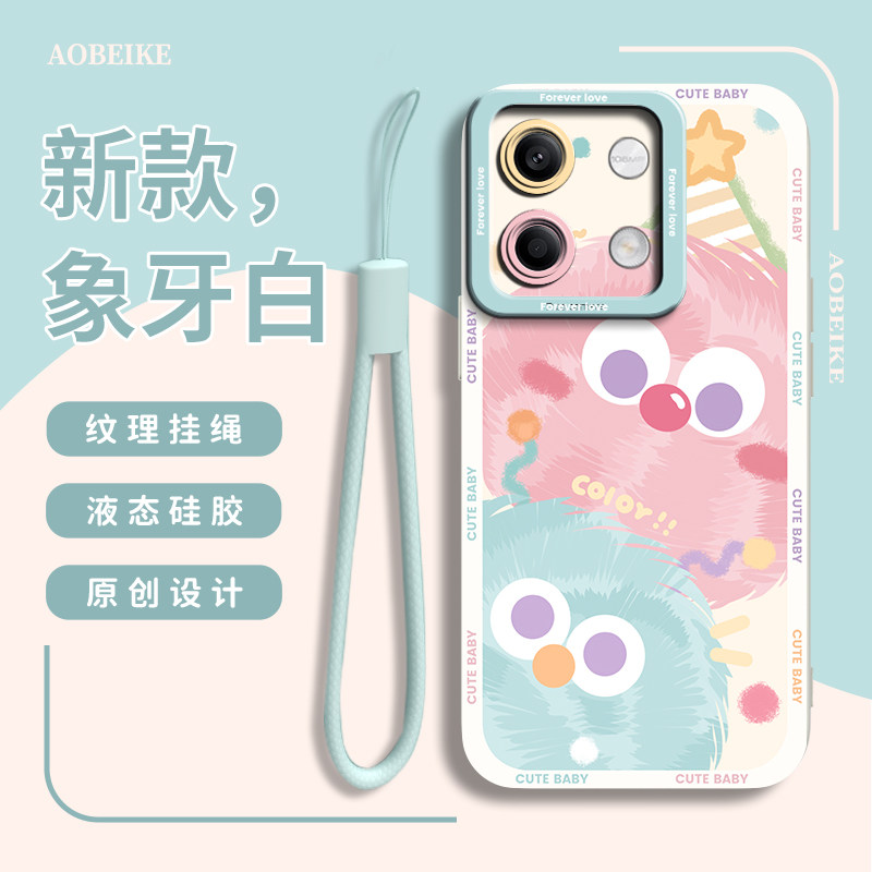 适用于红米note13手机壳多巴胺夏天女13/12pro液态天使眼Note9防摔5g带挂绳11e新款10创意TPro大眼仔毛球12潮