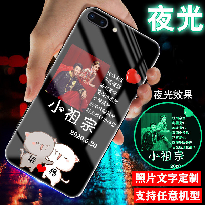 适用iphone苹果夜光玻璃xs来图定制max手机壳Plus照片7男8女xr款6Plus钢化6sPlus保护套6潮6s发光5s软边se2