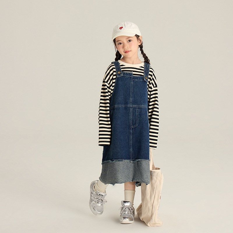 H AND E 原创童装牛仔背带裙女童2025早秋新款宽松显瘦休闲中长裙