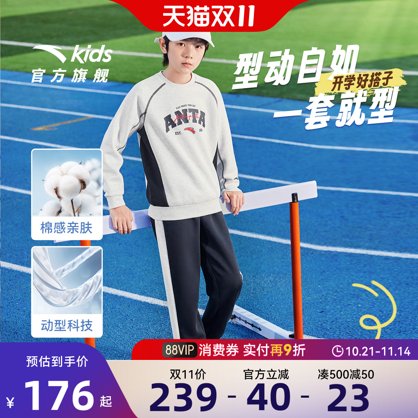 安踏儿童装男童套装春秋2025新款针织时尚套装亲肤卫衣裤子两件套