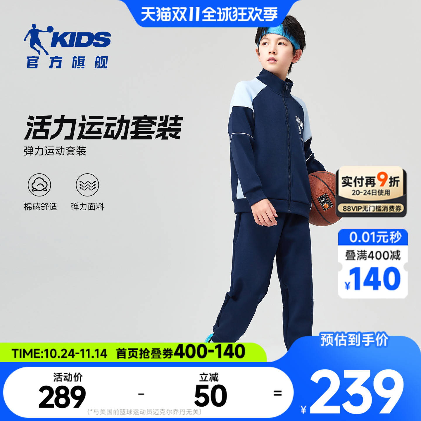 乔丹儿童长袖套装2025春秋款两件套男孩针织休闲时尚外套运动帅气