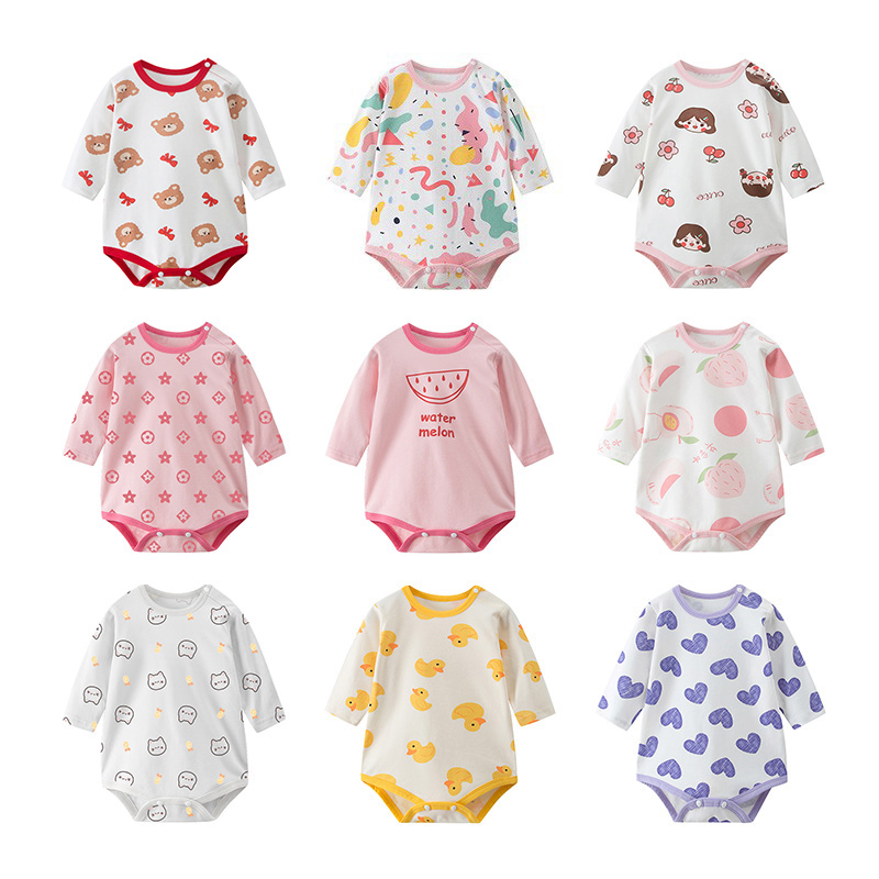包屁衣女宝宝秋季纯棉连体衣四季长袖三角哈衣秋冬小月龄婴儿衣服