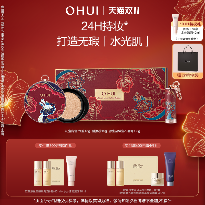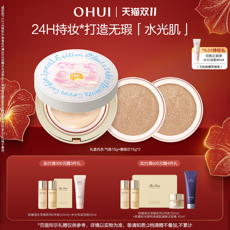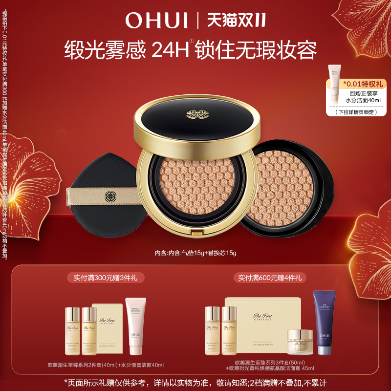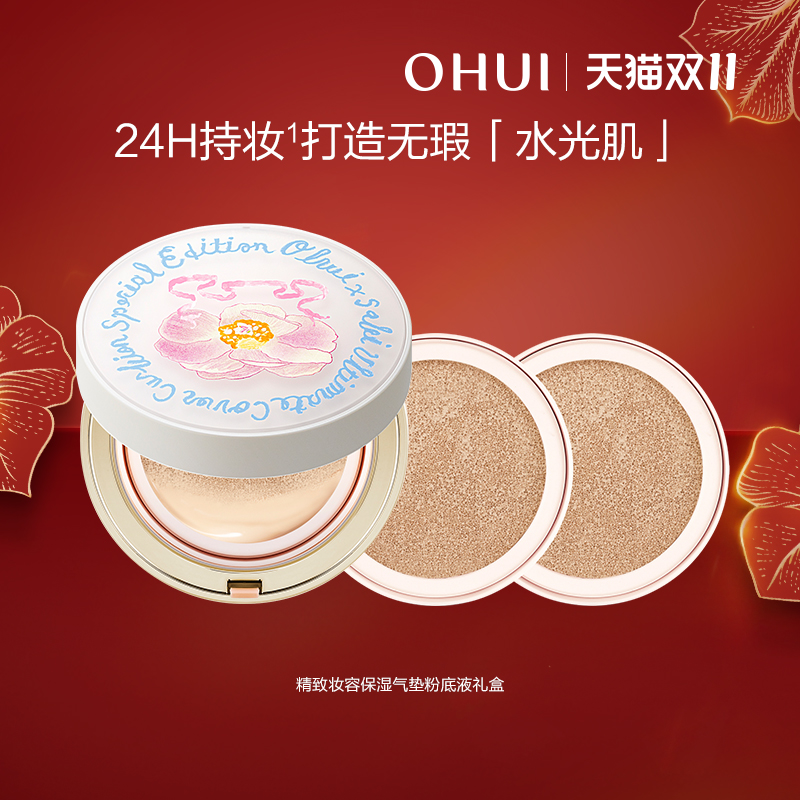 OHUI欧蕙源生至臻花朵气垫欧惠套盒保湿遮瑕提亮肤色持久养肤气垫